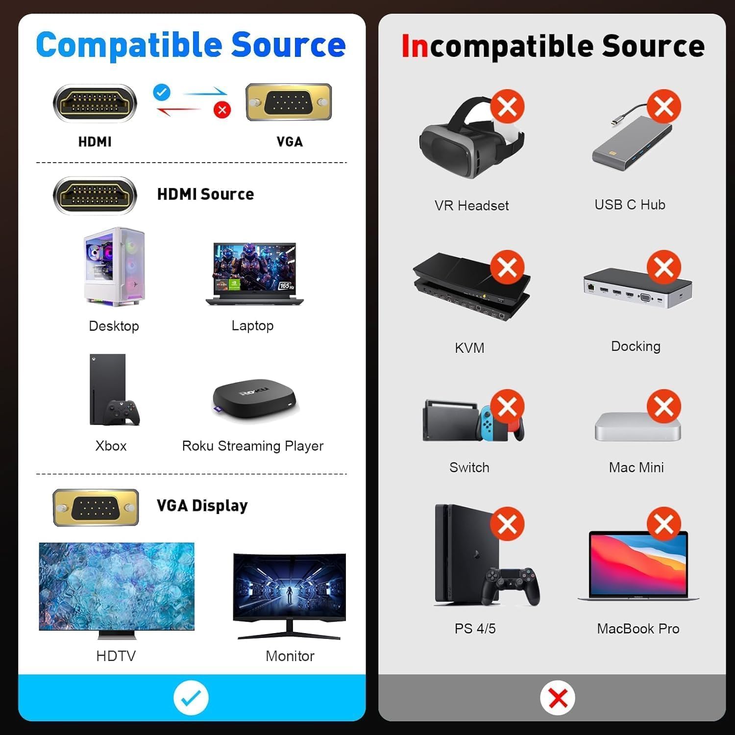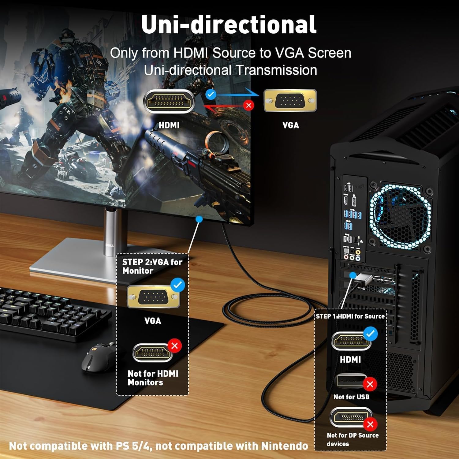 The WGL HDMI Male to VGA Male Video Converter Adapter Cable is a versatile solution for connecting HDMI-enabled devices to VGA-compatible displays such as LCD TVs, projectors, digital cameras, and DVDs. With this cable, you can easily bridge the gap between older VGA equipment and newer HDMI sources, allowing seamless video transmission without the need for additional software or complicated setup. Whether you're giving a presentation, watching movies, or sharing photos, this adapter ensures that you can connect your devices with ease.Built with high-quality materials, the adapter delivers clear, high-definition video without signal loss or distortion, ensuring a smooth viewing experience. The cable is compatible with a wide range of devices, making it perfect for use in homes, offices, and educational settings. Its plug-and-play design means that no drivers or software are required—simply connect your HDMI and VGA devices, and you’re ready to go.The WGL HDMI to VGA adapter is compact and lightweight, making it easy to carry with you for on-the-go connectivity. Whether you're using it for business presentations, school projects, or home entertainment, this converter cable offers reliable performance and convenient functionality.Bullet Points:Seamless HDMI to VGA Connection: Easily connect HDMI-enabled devices to VGA displays such as TVs, projectors, and monitors.High-Quality Video Transmission: Delivers clear, high-definition video without signal loss or distortion.Plug-and-Play Design: No need for drivers or additional software; simply connect the HDMI and VGA ends for instant use.Wide Device Compatibility: Works with a variety of devices, including laptops, projectors, digital cameras, and DVD players.Compact & Portable: Lightweight and easy to carry, perfect for business, school, or home entertainment use.Keywords:HDMI to VGA adapterHDMI to VGA converter cableHDMI male to VGA maleVideo converter cableHDMI to projector adapterConnect HDMI to VGAVGA adapter for TVHDMI to VGA for LCDHDMI to VGA for digital cameraPlug-and-play video adapter