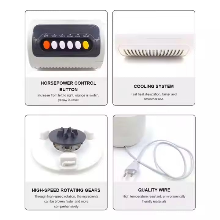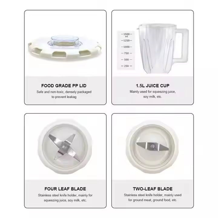 The 2-in-1 Multifunction Blender revolutionizes food preparation with its versatile dual-function design, combining the power of a professional blender with multipurpose processing capabilities. Engineered for both home kitchens and commercial use in hotels and restaurants, this high-performance appliance features six intelligent preset programs that take the guesswork out of creating perfect smoothies, soups, nut butters, crushed ice, and more.The 1200W high-torque motor delivers commercial-grade blending power to handle tough ingredients like frozen fruits, nuts, and ice cubes with ease, while the stainless steel 6-blade system creates a vortex for ultra-smooth results every time. The extra-large 1.8L BPA-free Tritan jar resists odors and stains, with measurement markings for precise ingredient control. For added convenience, the 2-in-1 design includes both a main blending jar and a secondary processing attachment (chopper/grinder) that stores neatly on the base.Commercial kitchens will appreciate the overload protection system that prevents motor burnout during heavy use, along with the stainless steel housing that withstands rigorous daily cleaning. The non-slip suction feet provide stability during operation, while the pulse function gives chefs manual control for custom textures. Home users will love the one-touch cleaning program and dishwasher-safe components that simplify maintenance.7 Bullet Points:Dual-Function Design - Blender + food processor attachment6 Smart Preset Programs - For perfect results every timeCommercial-Grade 1200W Motor - Handles toughest ingredients1.8L BPA-Free Tritan Jar - Odor/stain resistantStainless Steel Housing - Durable for professional useOverload Protection - Prevents motor burnoutEasy Clean Function - One-touch cleaning cycle10 Product Keywords:Commercial blender2-in-1 blender processorRestaurant grade blender1200W kitchen blenderMultifunction food blenderProfessional smoothie makerHotel kitchen equipmentBPA-free blender jar6-program blenderHeavy-duty food processor