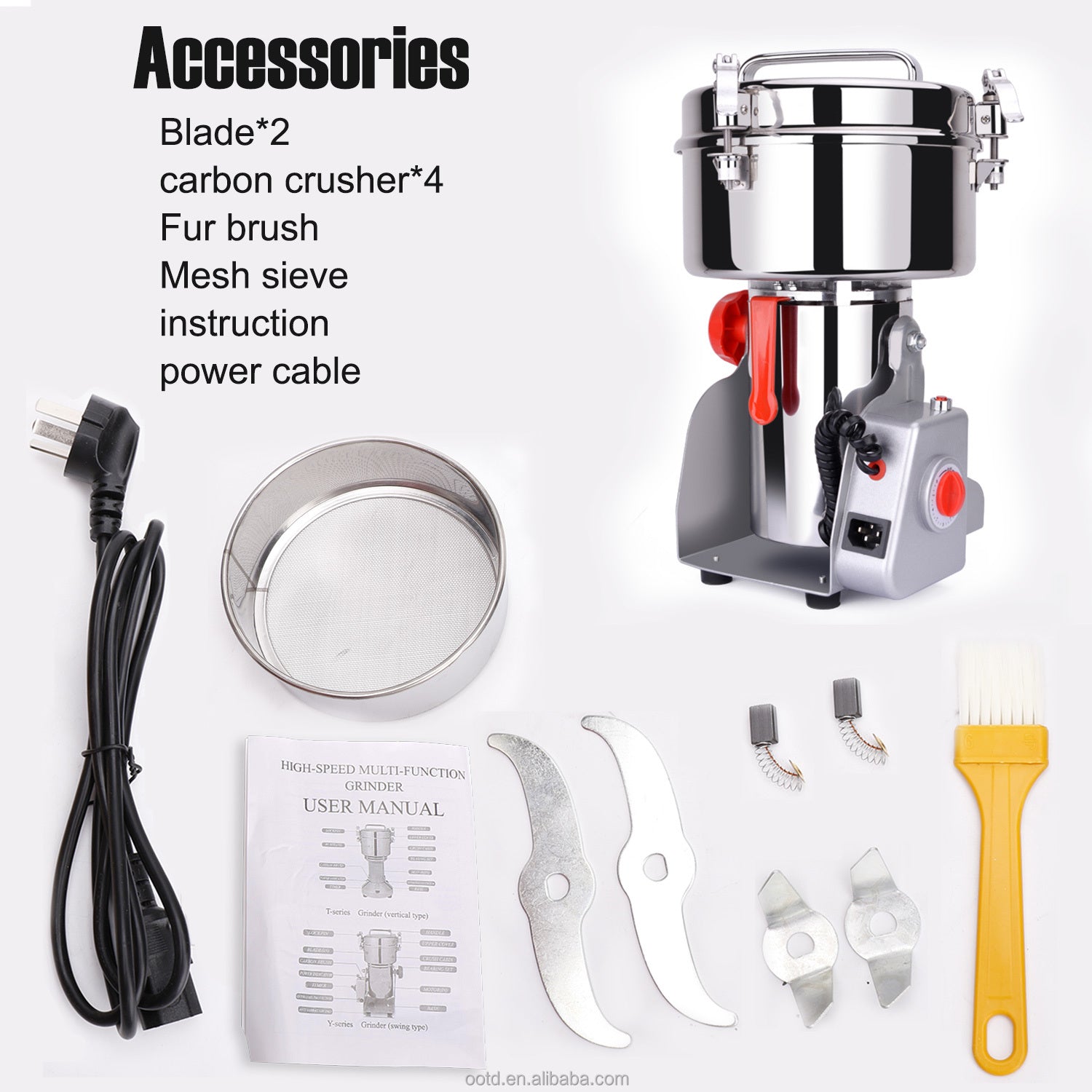 The 800g Food Grinder is a versatile and high-capacity grinding machine designed to meet all your kitchen grinding needs. Whether you're grinding herbs, spices, pepper, rice, or flour, this multi-purpose grinder delivers consistent and efficient results. With its 800g capacity, this machine is perfect for home use, allowing you to process larger batches of ingredients in one go.Crafted with durability and performance in mind, this grinder features a robust drum design that ensures long-lasting use. Its powerful motor is capable of handling a wide range of materials, from soft herbs to hard grains, making it an essential tool for any kitchen. The compact and lightweight design makes it easy to store and move, while its user-friendly operation ensures hassle-free grinding.One of the standout features of this grinder is its versatility. It can grind a variety of ingredients, including herbs, spices, pepper, rice, wheat, and other grains, into fine powders or coarse grinds. Whether you're preparing fresh spices for a recipe, grinding rice for homemade flour, or creating herbal powders for health supplements, this machine delivers exceptional results. The adjustable settings allow you to customize the texture to suit your needs, ensuring perfect results every time.The 800g capacity is ideal for families or individuals who frequently prepare large batches of ingredients. Its compact size ensures it doesn't take up much space in your kitchen, while its durable construction guarantees it can withstand regular use. The grinder is also easy to clean, with detachable parts that can be washed and reassembled quickly.Whether you're a home cook, a health enthusiast, or someone who loves experimenting with fresh ingredients, the 800g Food Grinder is the ultimate kitchen companion. Its combination of high capacity, versatility, and ease of use makes it a must-have for anyone who values quality and convenience.Upgrade your kitchen with the 800g Food Grinder and experience the difference of freshly ground ingredients in every meal.Products 7 Bullet Points800g High Capacity: Perfect for grinding large batches of herbs, spices, grains, and more.Multi-Purpose Grinding: Suitable for herbs, pepper, rice, flour, and other dry ingredients.Powerful Motor: Ensures efficient and consistent grinding results.Adjustable Settings: Customize the texture for fine powder or coarse grinds.Compact Design: Lightweight and space-saving, ideal for home use.Durable Construction: Built to withstand frequent use with long-lasting performance.Easy to Clean: Detachable parts make maintenance quick and hassle-free.10 Products KeywordsFood Grinder MachineHerb GrinderPepper GrinderFlour Mill MachineRice Mill GrinderHome Grinding MachineMulti-Purpose Grinder800g GrinderSpice GrinderGrain Grinding Machine