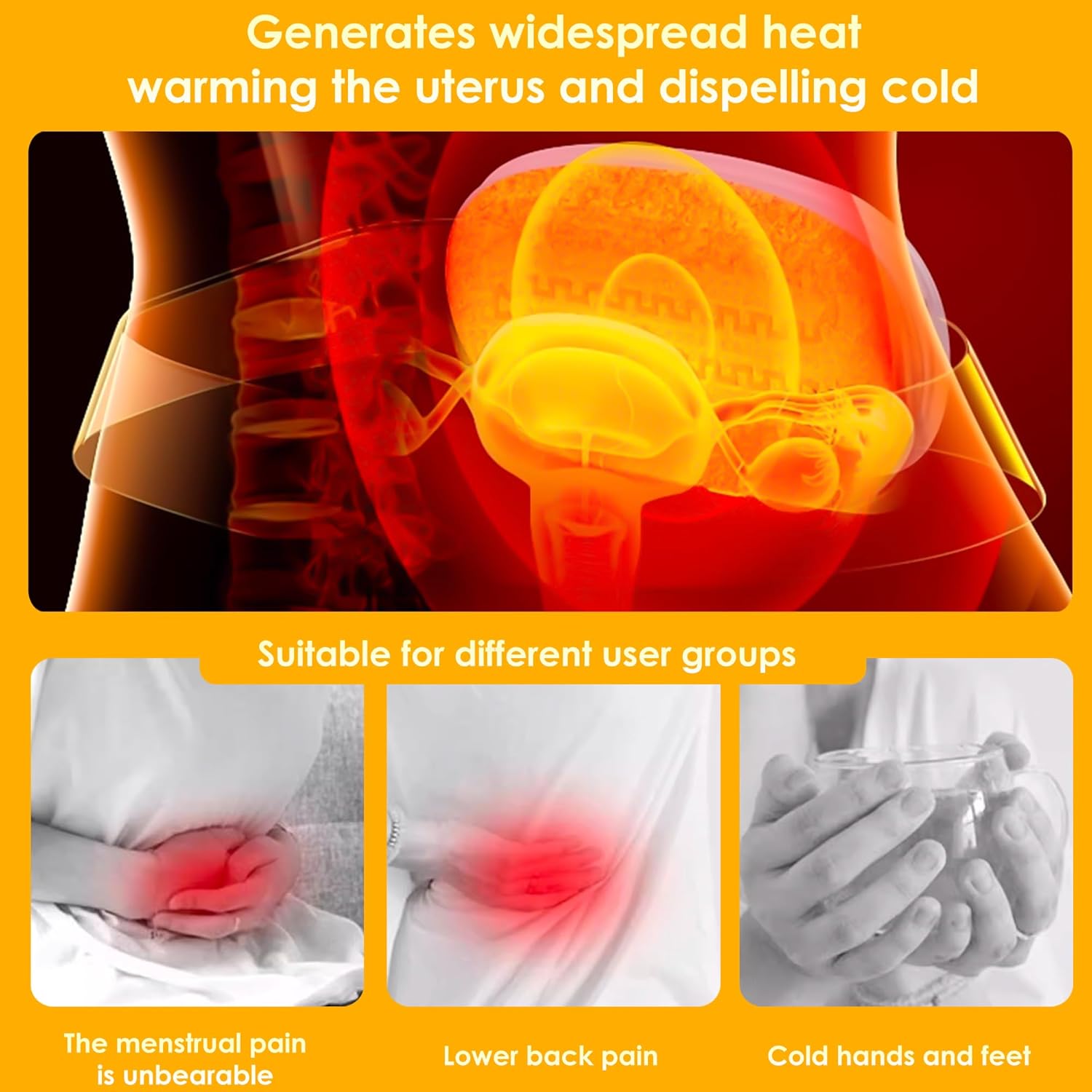 The Electric Heating Pad for Cramps offers targeted relief from menstrual discomfort, muscle aches, and everyday pain with its advanced cordless design and customizable warmth. This upgraded heating pad features three adjustable heat settings (low, medium, high) to deliver gentle, consistent warmth exactly where you need it, whether for abdominal cramps, back pain, or stiff shoulders. The soft, machine-washable white fabric is gentle on skin and designed for comfort during extended use, while the secure adjustable strap ensures the pad stays in place whether you’re resting or moving around.Powered by a rechargeable lithium battery, this heating pad provides up to 4 hours of cordless operation on a single charge, making it ideal for use at home, in the office, or on the go. The smart auto-shutoff feature enhances safety by turning the device off after 90 minutes, and the even heat distribution technology prevents hot spots for a soothing, reliable experience. Compact and lightweight, this heating pad is easy to pack in a bag or store in a drawer, offering convenient relief whenever discomfort arises.7 Bullet Points:3 Adjustable Heat Settings - Low, medium, and high for customized comfortCordless & Portable - Rechargeable battery for up to 4 hours of useSoft, Washable Fabric - Gentle on skin and easy to cleanSecure Adjustable Strap - Keeps pad in place during useEven Heat Distribution - Prevents hot spots for consistent warmthAuto-Shutoff Safety - Turns off after 90 minutes for peace of mindCompact & Lightweight - Easy to carry and store10 Product Keywords:Electric heating padHeating pad for crampsCordless heating padPortable heating padMenstrual pain reliefRechargeable heating padAdjustable heat settingsSoft heating padWhite heating padMuscle pain relief