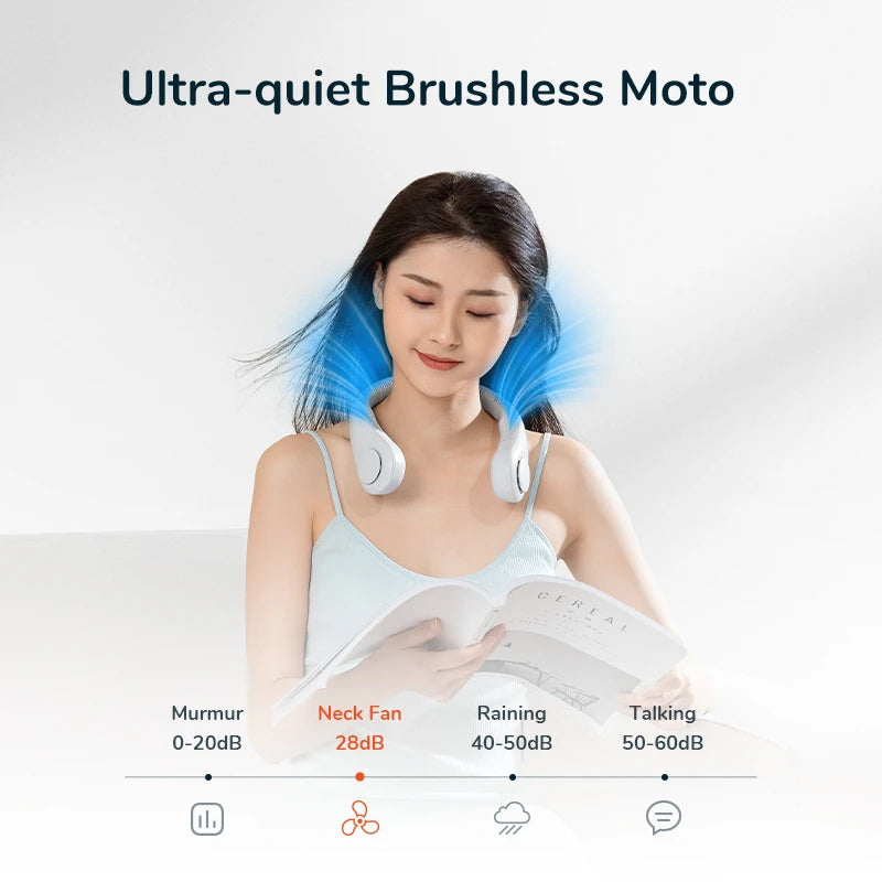 Stay Cool Anywhere with Our Revolutionary Neck FanBeat the heat in style with our Mini Neck-Mounted Bladeless Fan, the ultimate hands-free cooling solution for summer activities. This ultra-lightweight (only 180g) personal cooler wraps comfortably around your neck, delivering a 360° cooling breeze without the hazards of traditional blades. Perfect for outdoor workouts, travel, office use, or relaxing at home.Advanced Cooling Technology:Twin Turbine Airflow System: Dual bladeless vents provide double-direction airflow (front and back)3 Adjustable Speeds: Customize your cooling from gentle breeze (25dB) to powerful airflow (45CFM)Safe Bladeless Design: No pinching risk - ideal for children and seniors180° Adjustable Air Vents: Direct airflow exactly where you need itSmart Features for All-Day Comfort:• USB Rechargeable Battery: 2000mAh capacity provides 4-12 hours runtime (varies by speed)• Quick Charge Technology: Fully charges in 2.5 hours via included USB-C cable• Breathable Silicone Neckband: Soft, flexible, and sweat-resistant• LED Power Indicator: Shows battery level at a glanceWhy This Neck Fan Stands Out:✓ Ultra-Portable: Collapsible design fits in purses or backpacks✓ Quiet Operation: As low as 25dB - won't disturb conversations✓ Multi-Surface Use: Can be placed on desks/tables when not worn✓ Perfect for:Outdoor workouts & sportsTraveling & commutingGardening & yard workOffice & home useMenopause/night sweats relief7 Bullet Points:✔ Hands-free bladeless neck cooling system✔ Dual-direction 360° airflow circulation✔ 3-speed settings (low/medium/high)✔ USB-C rechargeable (4-12 hour runtime)✔ Ultra-lightweight (180g) & adjustable fit✔ Quiet operation (25dB) & safe for kids✔ Perfect for sports, travel, and outdoor use10 Product Keywords:Neck mounted fanBladeless personal coolerRechargeable neck fanHands-free portable fanOutdoor sports fanMini USB neck coolerSummer cooling fan360° airflow fanLightweight personal fanTravel neck air circulator