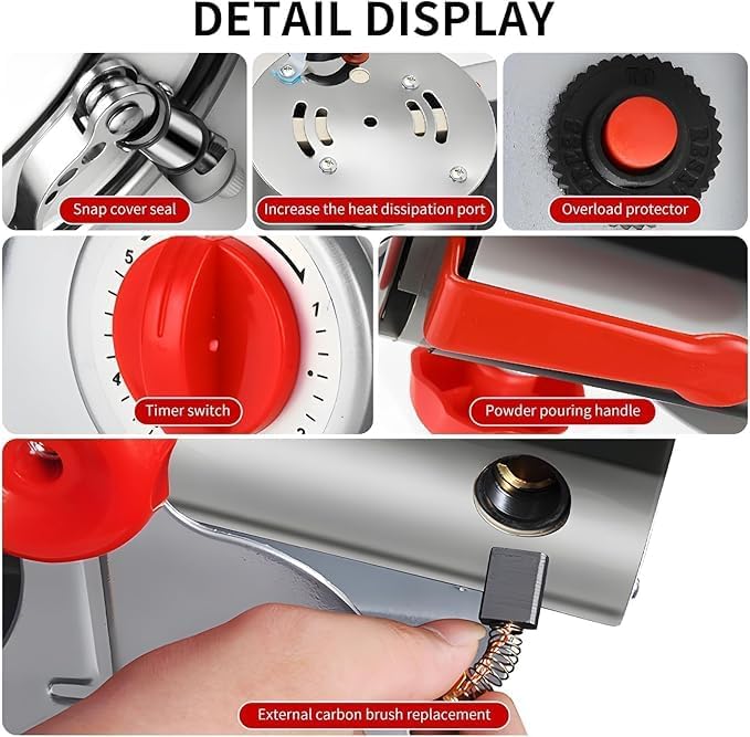 Description:The Multifunctional Electric Flour Mill Machine is designed for effortless grinding of wheat, coffee, spices, and more, making it an essential kitchen tool for any home. Featuring a powerful motor and stainless steel construction, this grinder ensures quick and efficient performance while maintaining durability for long-lasting use. Its automatic operation allows for a hassle-free grinding experience, perfect for creating fine powders for baking, cooking, or brewing coffee at home.This versatile grinder can handle a wide range of ingredients, from grains like wheat and rice to aromatic spices and coffee beans. Its efficient design ensures even grinding, giving you consistent results every time. The stainless steel build not only ensures durability but also prevents contamination, keeping your food safe and fresh.With its compact design, the flour mill machine fits neatly into any kitchen, providing a practical solution for those who enjoy fresh, homemade flour or ground spices. Whether you’re a passionate baker, coffee lover, or home cook, this grinder offers the performance and convenience you need for all your grinding tasks.Bullet Points:Multifunctional Use: Grinds wheat, coffee beans, spices, and more for versatile home cooking and baking needs.Stainless Steel Build: Durable and rust-resistant construction ensures long-lasting performance and food safety.Automatic & Efficient: Powerful motor ensures quick, even grinding with minimal effort.Compact & Practical: Space-saving design fits easily into any kitchen, offering convenience and efficiency.Consistent Results: Ensures even grinding for fine, consistent powders ideal for baking, brewing, and cooking.Keywords:Multifunctional Flour Mill MachineAutomatic Powder GrinderElectric Grinder for Home UseWheat and Coffee GrinderStainless Steel Flour MillSpice Grinder MachineHome Use Electric GrinderEfficient Powder GrinderDurable Flour Mill MachineCompact Kitchen Grinder