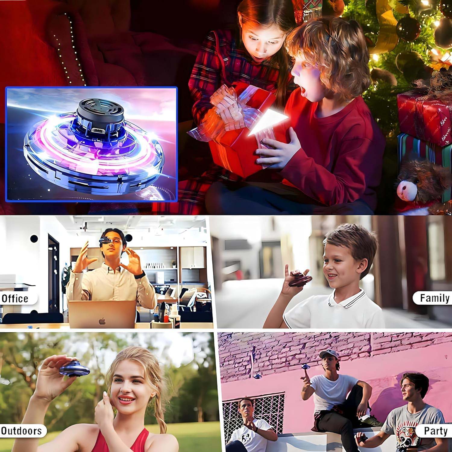 The UFO Hand Controlled Mini Drone is an innovative and captivating toy that combines the fun of a flying gadget with the interactive appeal of a fidget spinner. This mini drone is designed for easy, intuitive operation, as it can be launched directly from the palm of your hand and is controlled simply by placing your hand beneath it to keep it hovering and stable. Its unique UFO-like design, complete with colorful LED lights, creates a mesmerizing visual effect as it flies through the air, making it a thrilling spectacle both indoors and in calm outdoor conditions. The drone is capable of 360-degree rotating flips and tricks, adding an element of dynamic play and challenge. It is USB rechargeable, ensuring it is always ready for flight without the need for disposable batteries, making it an economical and eco-friendly choice.Safe and user-friendly, this flying spinner is an excellent introduction to drone piloting for kids, helping to develop their hand-eye coordination in a fun and engaging way. Its lightweight and durable construction can withstand minor bumps and crashes. Providing a unique blend of sensory stimulation, interactive play, and cool aerial acrobatics, this mini drone offers endless entertainment for children and families.Products 7 Bullet Point:Easy hand-controlled operation—hover by placing your hand underneath the drone.Features bright LED lights for a captivating light show during flight.Performs 360-degree rotating flips and tricks for dynamic aerial stunts.USB rechargeable design for convenient power-ups and eco-friendly use.Combines the fun of a fidget spinner with the excitement of a flying drone.Safe, lightweight, and durable, ideal for indoor play and calm outdoors.A fun and interactive toy that helps develop hand-eye coordination.10 Products Keyword:Hand Controlled DroneFlying Fidget SpinnerLED UFO DroneMini Drone ToyUSB Rechargeable Drone360 Rotating DroneKids Flying ToyHand Operated DroneIndoor DroneBoys and Girls Drone